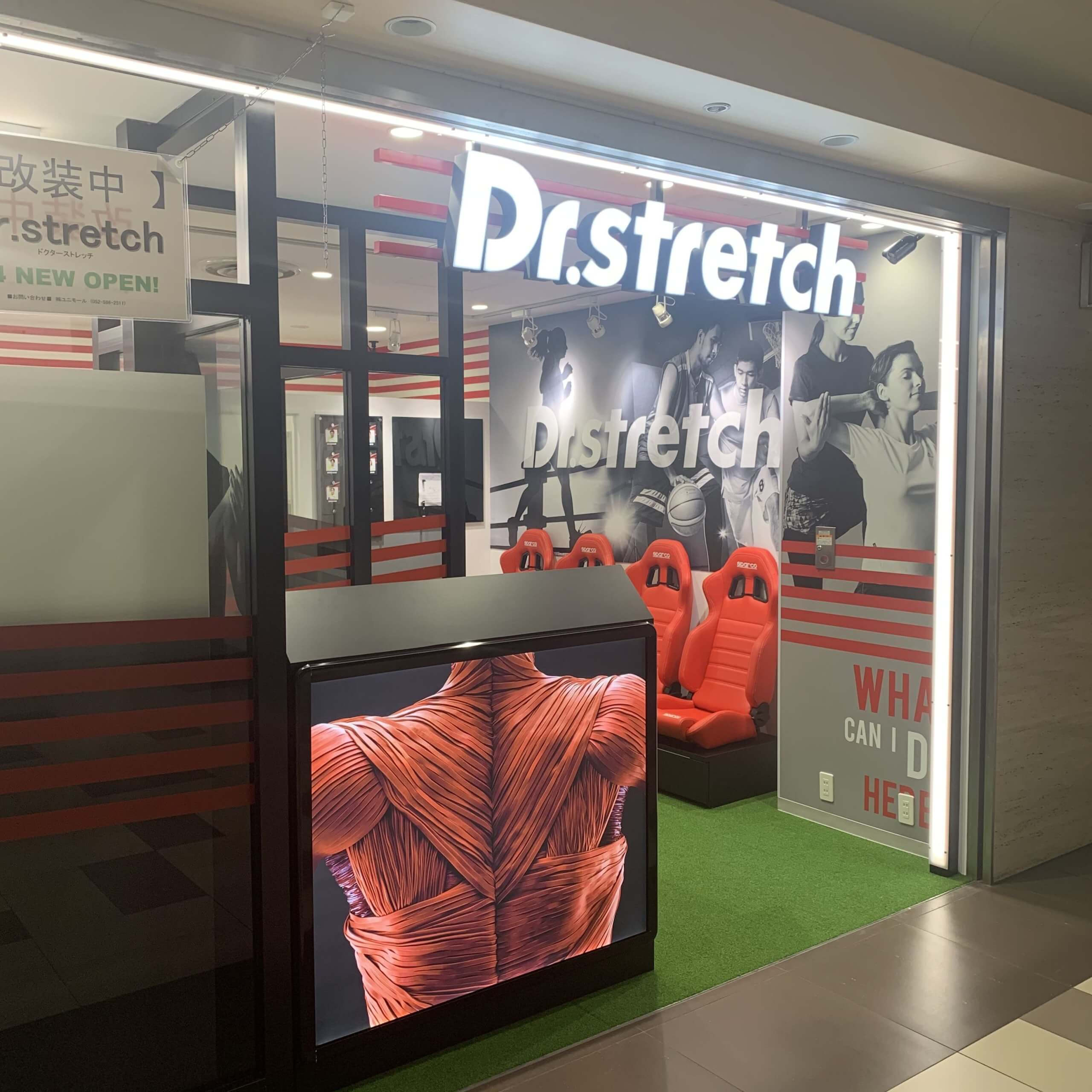 Dr,stretch様 新店舗施工 2020.09.22店舗 / 新店舗施工 / 名古屋市 今話題のDr,stretch様の新店舗施工を担当させていただきました。 名古屋の中心部や、ショッピングモールでも多く目にするようになりました。 インパクトある看板で目を引きます。 Photo Gallery WORKS TOP WORKS TOP